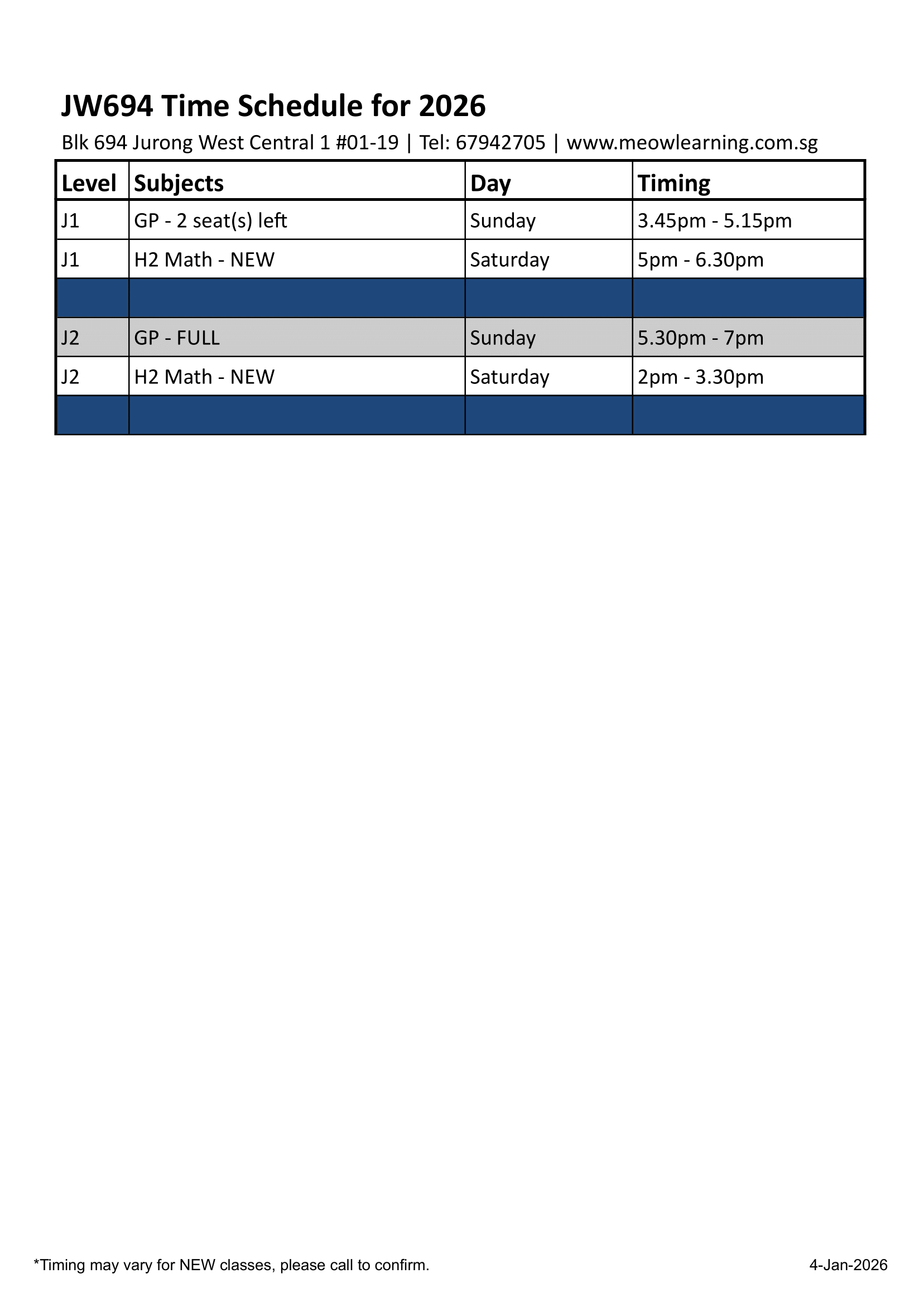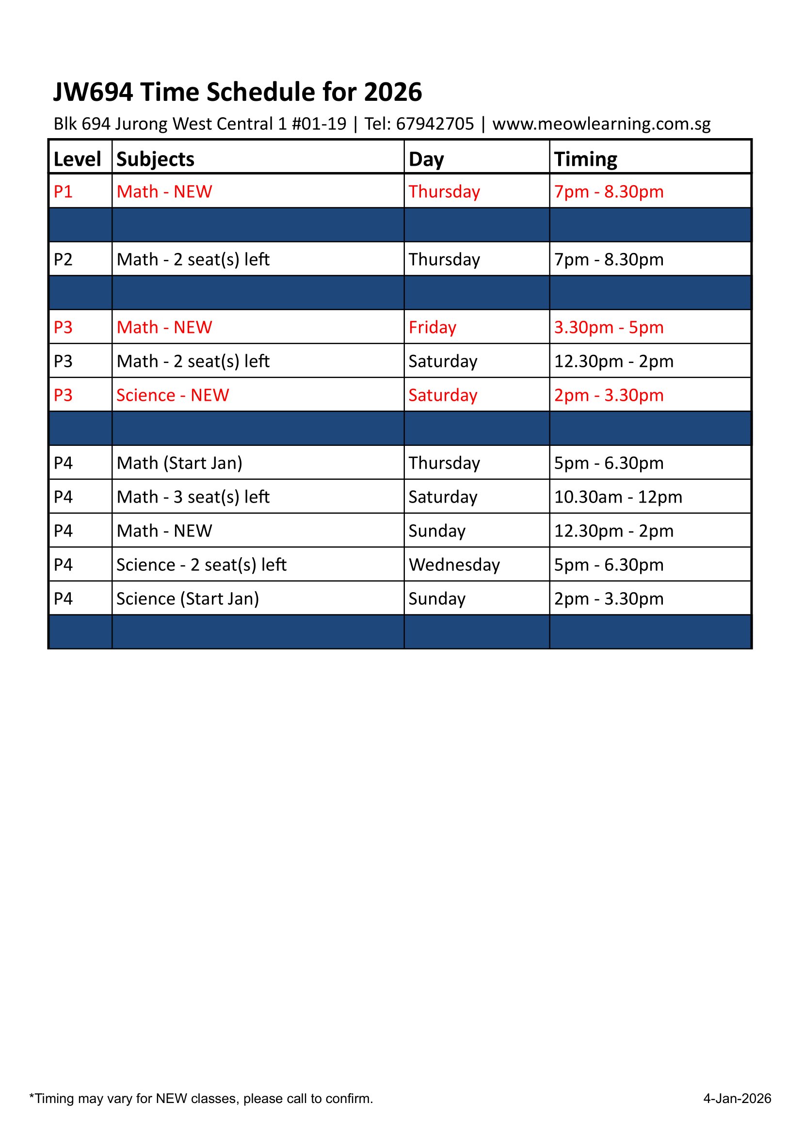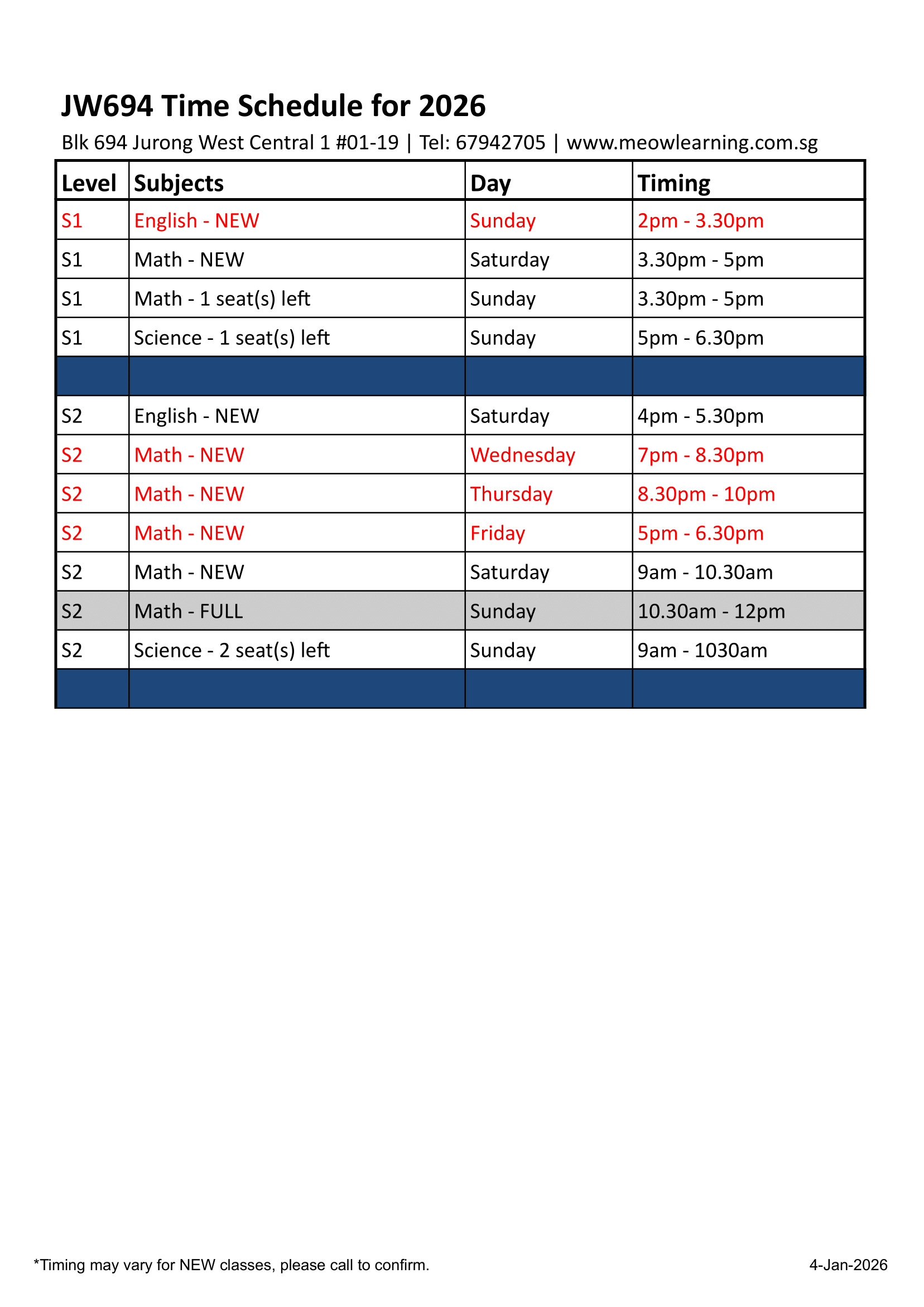 Download our LATEST 2026 schedule below!