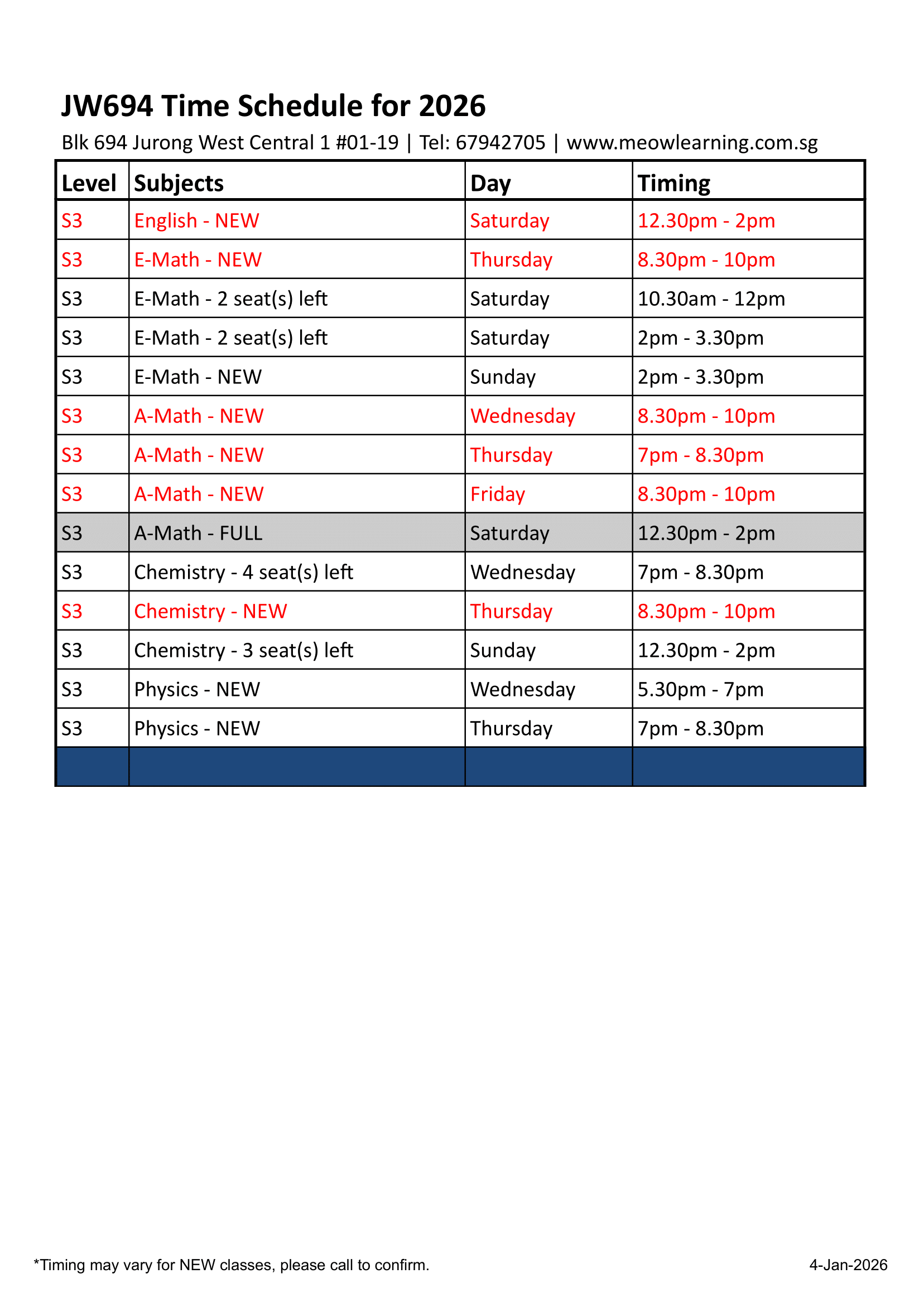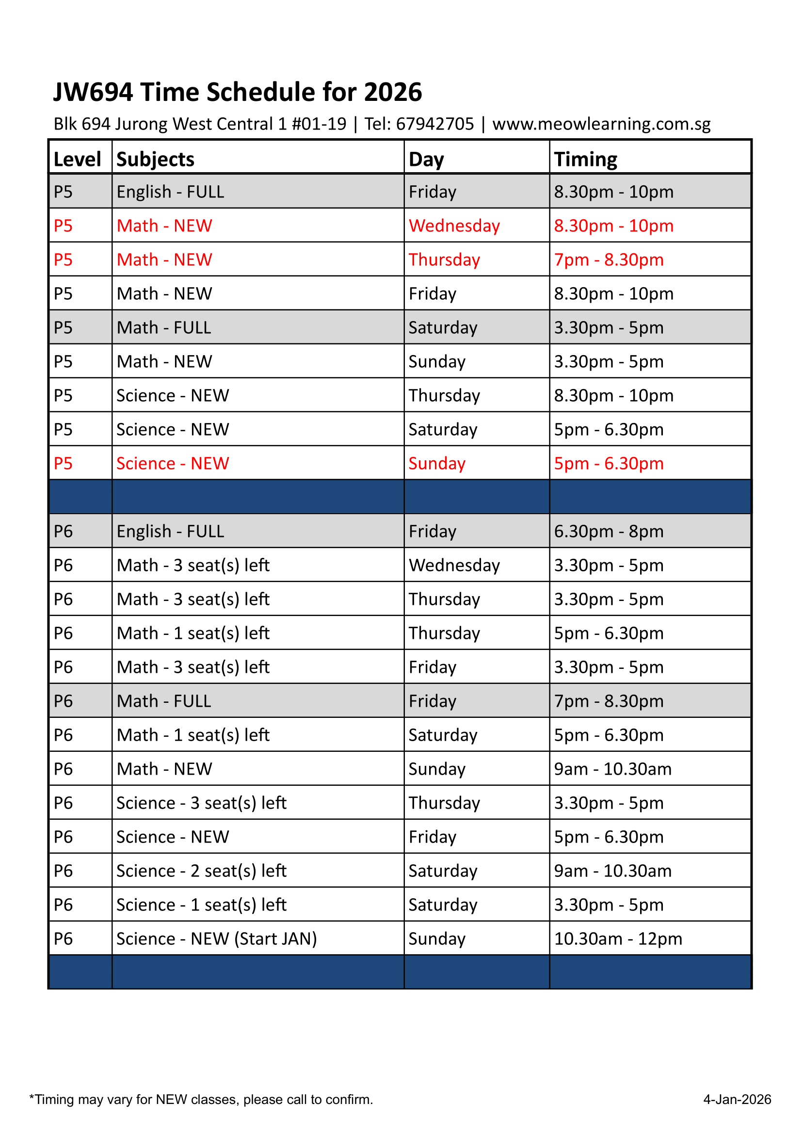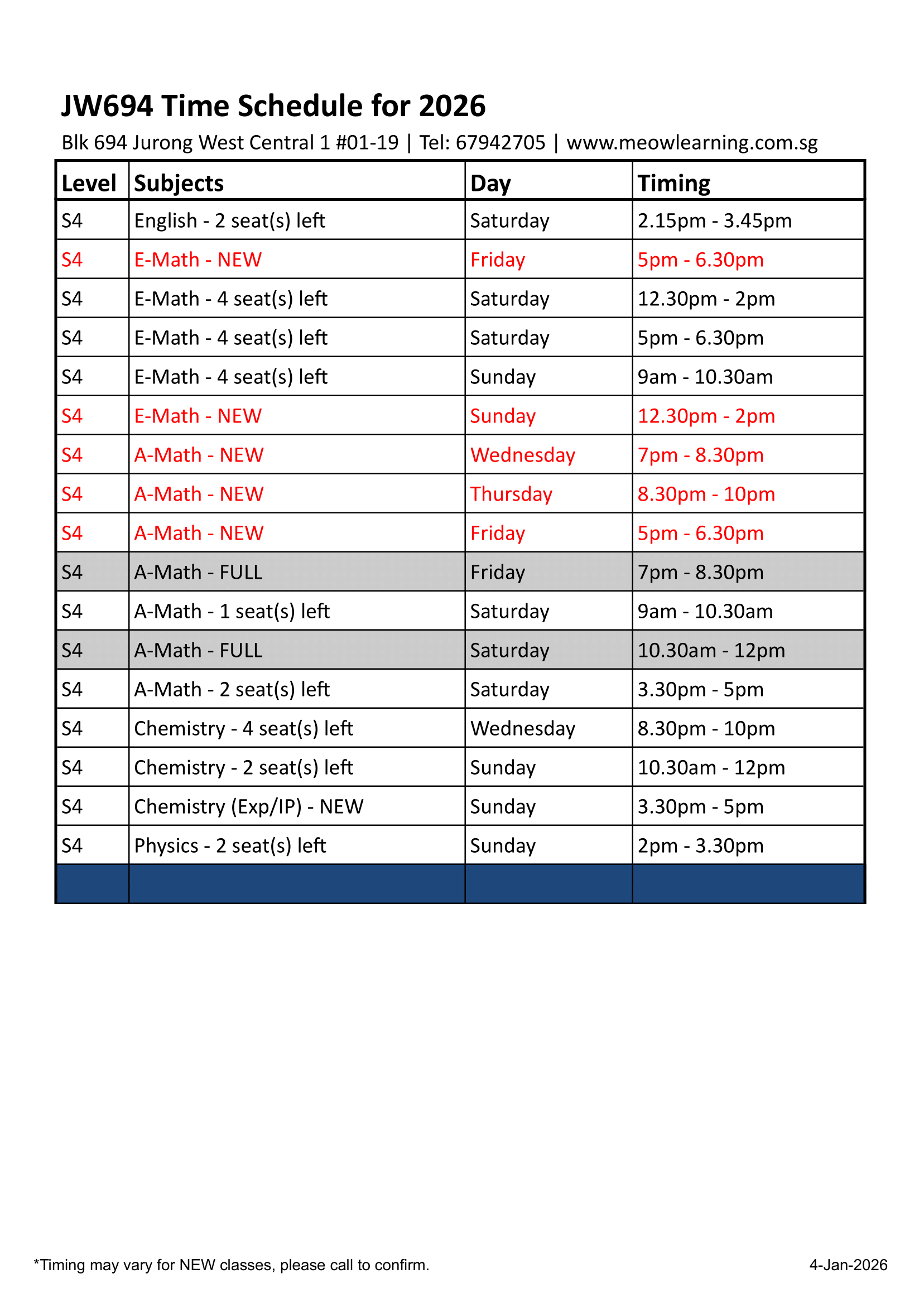 Download our LATEST 2026 schedule below!